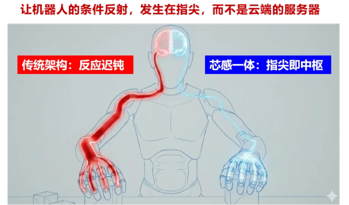 在速度方面,福莱新材首创了将算力下沉到每一寸电子皮肤的设计,将微型化甚至柔性化的信号处理芯片,直接物理集成在触觉传感器旁。它就像机器人的“指尖脊髓”,当检测到物体滑落的瞬间,TPU在指尖就能自行判断并完成信号处理,实现毫秒级的极速反射。